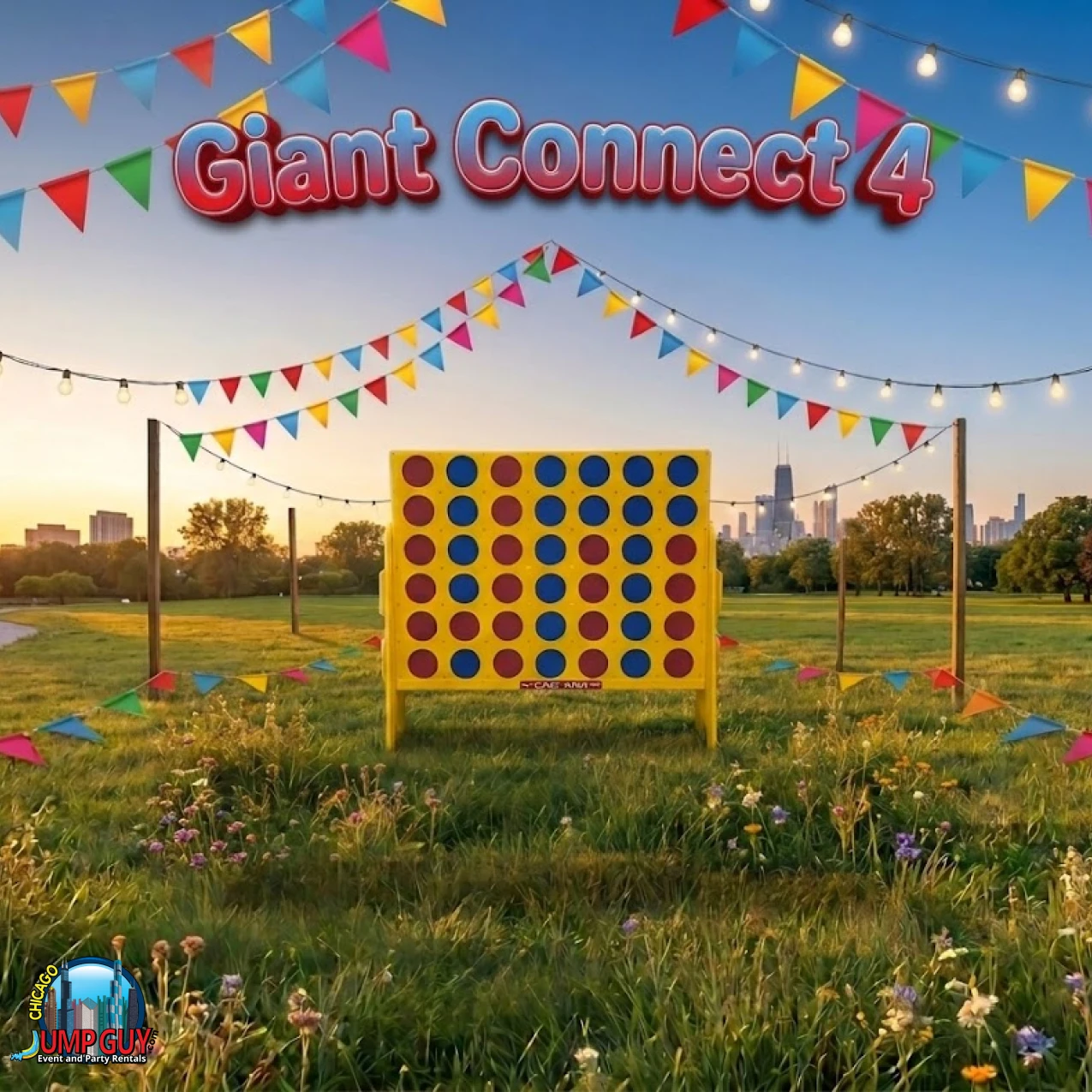 Oversized game sets for outdoor events and large indoor venues. Giant Connect 4, Rainbow Colored Blocks, and the GaGa Ball Pit are a standard add-on package at Naperville school carnivals and church festivals in the 60540 and 60563 service zones.